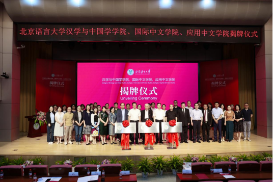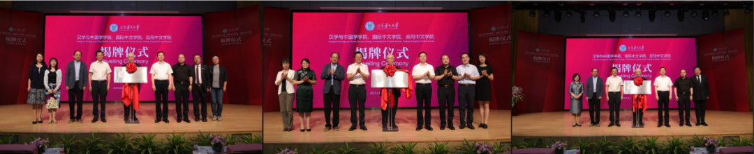 、汉学与中国学学院和国际中文学院揭牌仪式在教一楼礼堂隆重举行。