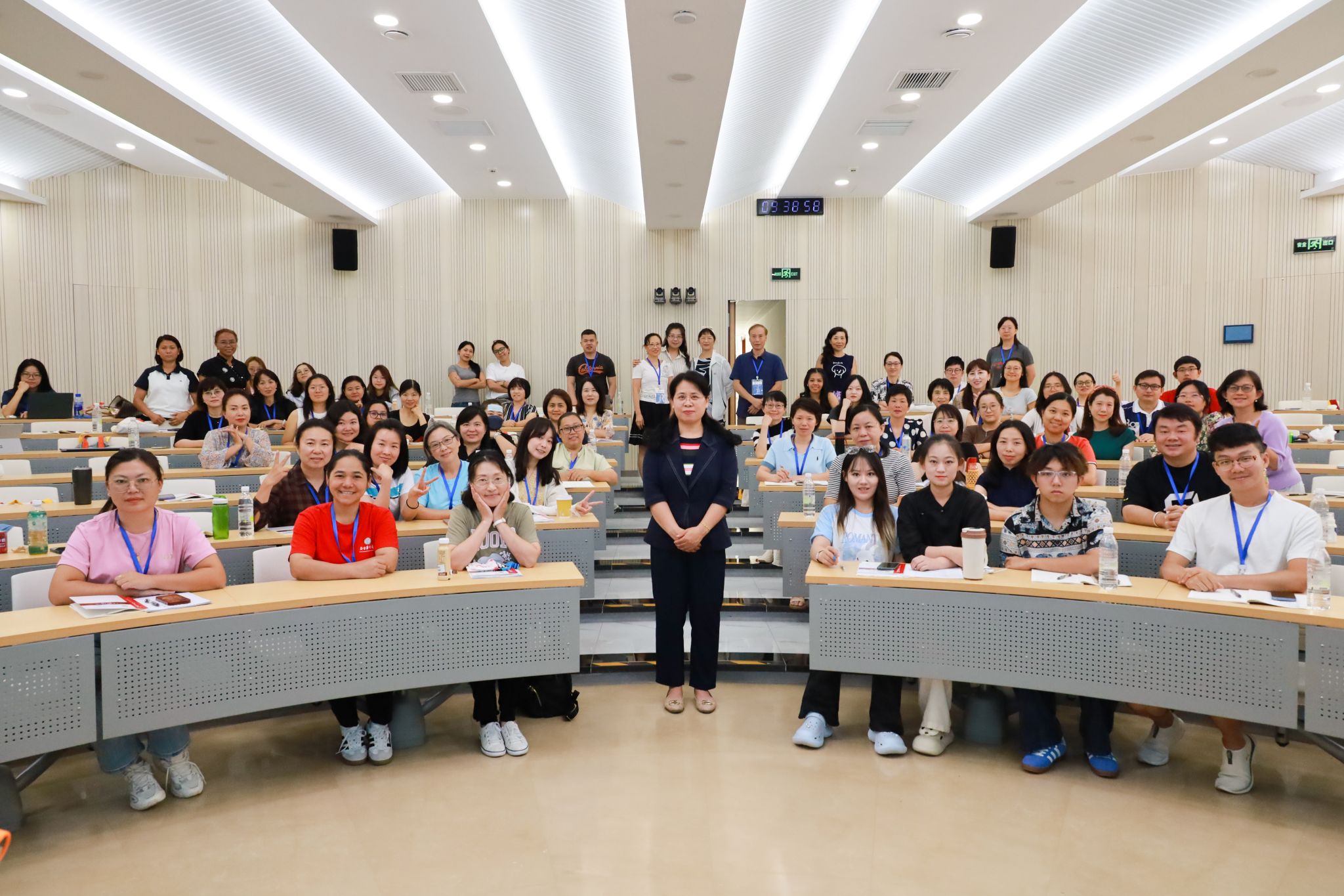 典礼现场更洋溢着温情与活力——学员们精心准备的文艺表演为本次研习画上温馨句点。朗诵《春江花月夜》以悠扬声韵开启表演篇章,尽显中华诗词之美;手势舞《听我说谢谢你》用灵动动作传递对授课教师、项目助管的感恩之情;小提琴独奏《查尔达什舞曲》、杨式太极拳表演、舞蹈《敏格喇吧》轮番登场,展现出新生代华文教师的多才多艺;歌曲《隐形的翅膀》则唱出了大家对华文教育事业的执着与热爱。当《友谊地久天长》的旋律响起,台上台下齐声高歌,十几天里凝结的深厚情谊在此刻升华;最终,典礼在歌曲串烧《中国,我爱你》的激昂旋律中落下帷幕,学员们纷纷表示,将带着此次研习的收获与使命,在海外华文教育岗位上积极作为,为中华文化国际传播贡献力量。