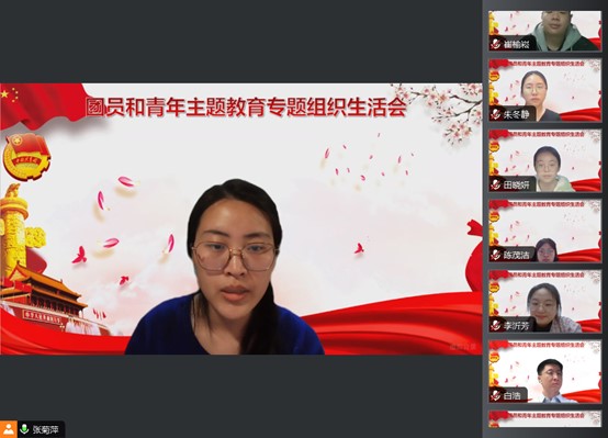 会上,团支部书记首先报告了团员和青年主题教育的开展情况,分别就本学期四个专题“思想旗帜”、“坚强核心”、“强国复兴”和“挺膺担当”的学习情况进行了汇报,同时指出了工作中的不足。第一支部团支书张菊萍表示“我们只有把全心全意为人民服务放在首位,立足群众的现实利益和需求,帮助解决师生的困难事、烦心事,从小处着眼,讲好团的故事,发扬团的精神,才能增强集体的安全感、获得感、幸福感,激励大家以昂扬的姿态投入到实际工作中,更好地落实校团委的各项工作安排,推进组织的高凝聚力发展。”